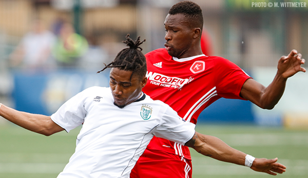 The Kickers nearly doubled their lead just three minutes after scoring the first goal of the game. Samuel Asante controlled a loose ball and played it up to Sunny Jane. Jane fed the ball through for Raul Gonzalez on the edge of the Bethlehem box as he was breaking past the Steel FC backline and slide his shot under a diving Jake McGuire, into the back of the net. Before the celebrations could start the linesman raised his flag for the offside call on Gonzalez’s run.